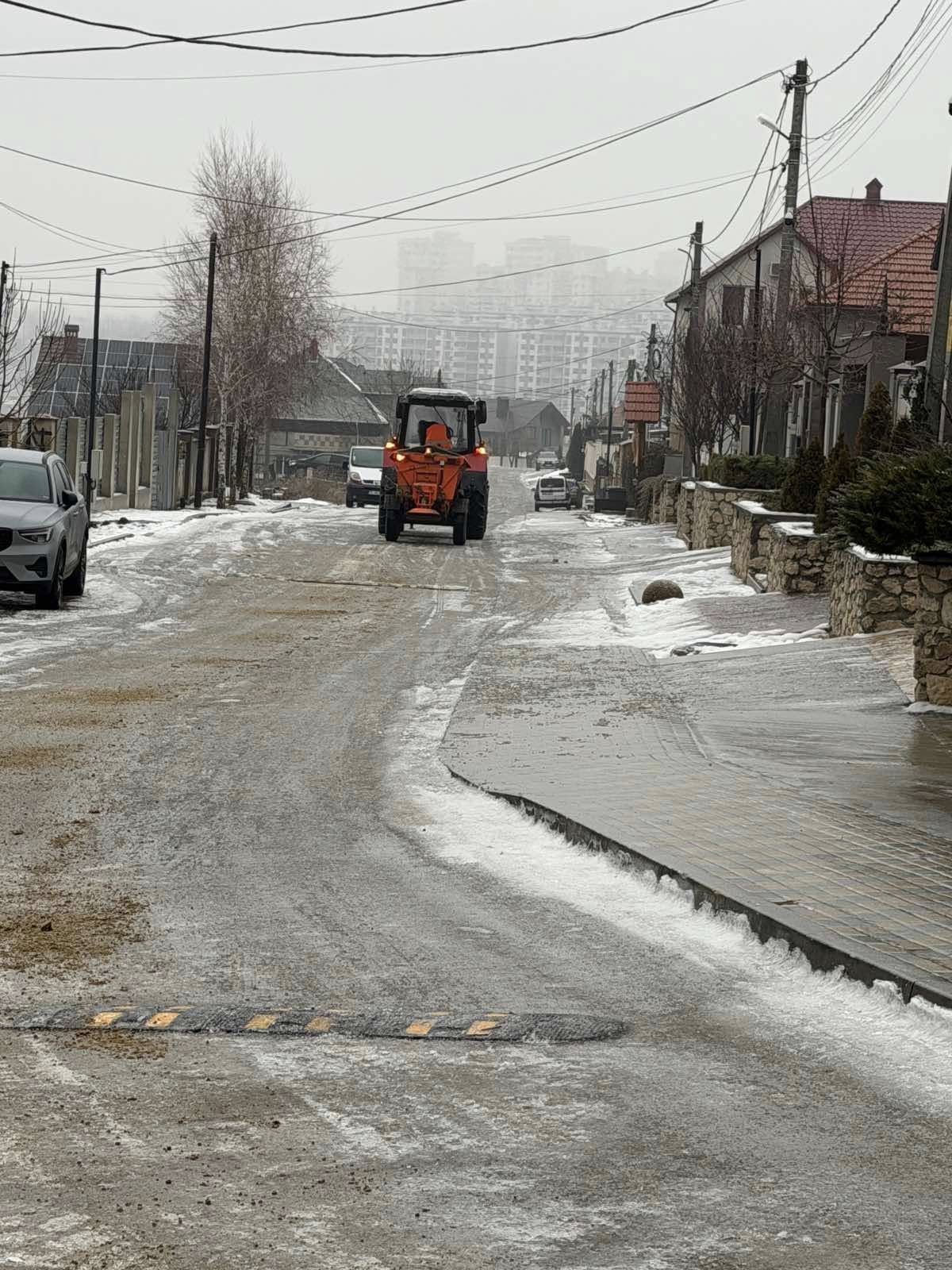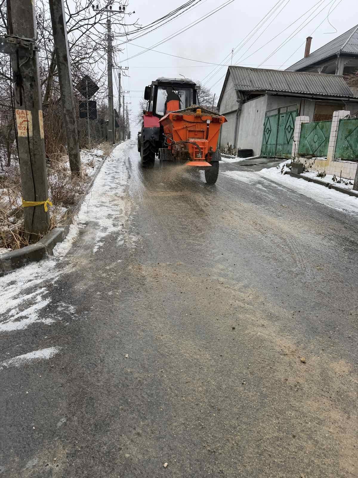 Potrivit primarului Eleonora Șaran, două utilaje – un tractor cu sărăriță și o autobasculantă – împreună cu patru muncitori, intervin continuu pe străzile și trotuarele din oraș.