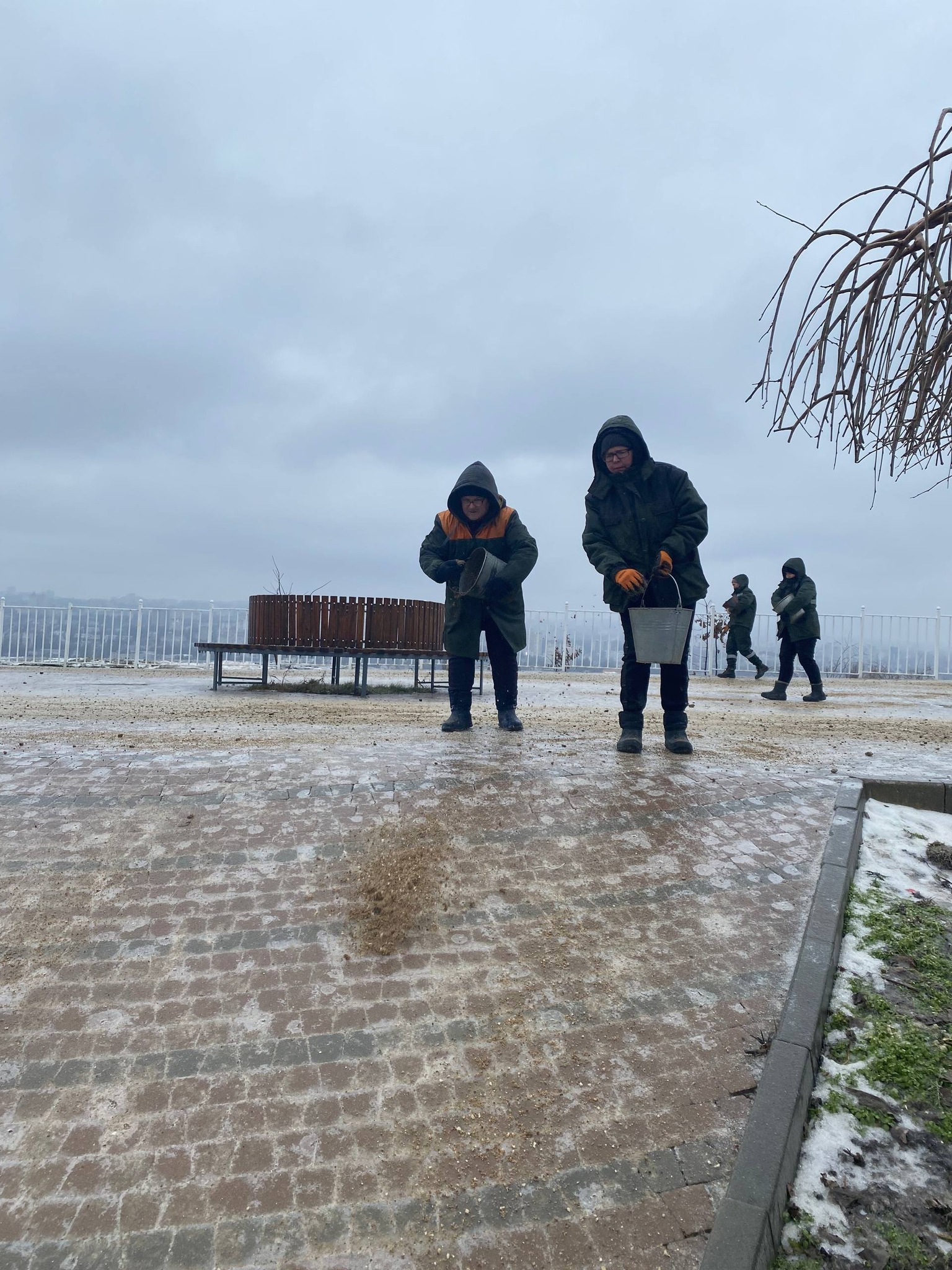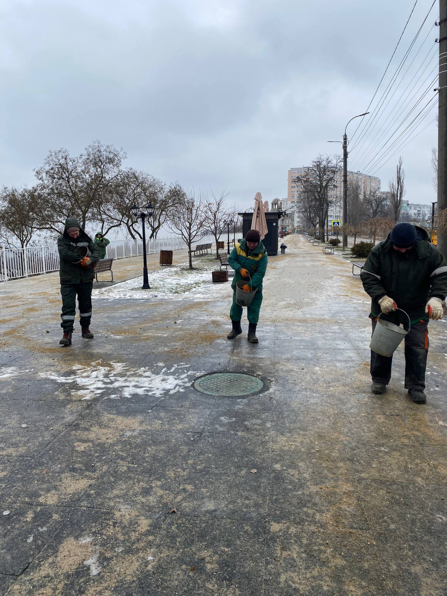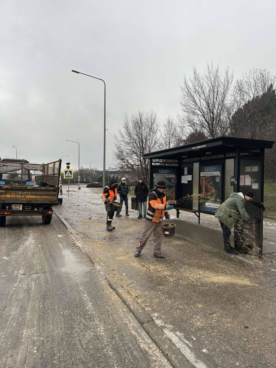 Muncitorii care au acționat neîntrerupt, începând cu seara zilei de miercuri, 4 februarie, își continuă și la această oră activitatea de împrăștiere a materialului antiderapant în toate sectoarele Capitalei.