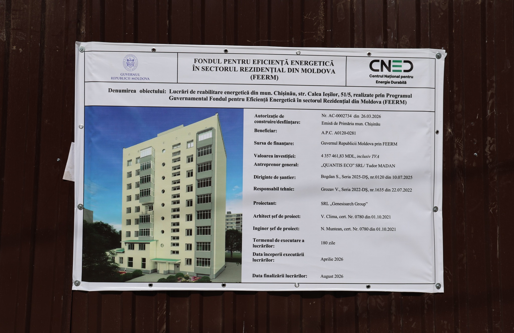 Unul dintre primele blocuri locative din municipiul Chișinău, incluse în programul guvernamental de reabilitare energetică prin Fondul pentru Eficiență Energetică în sectorul Rezidențial din Moldova (FEERM), a intrat oficial în proces de renovare.