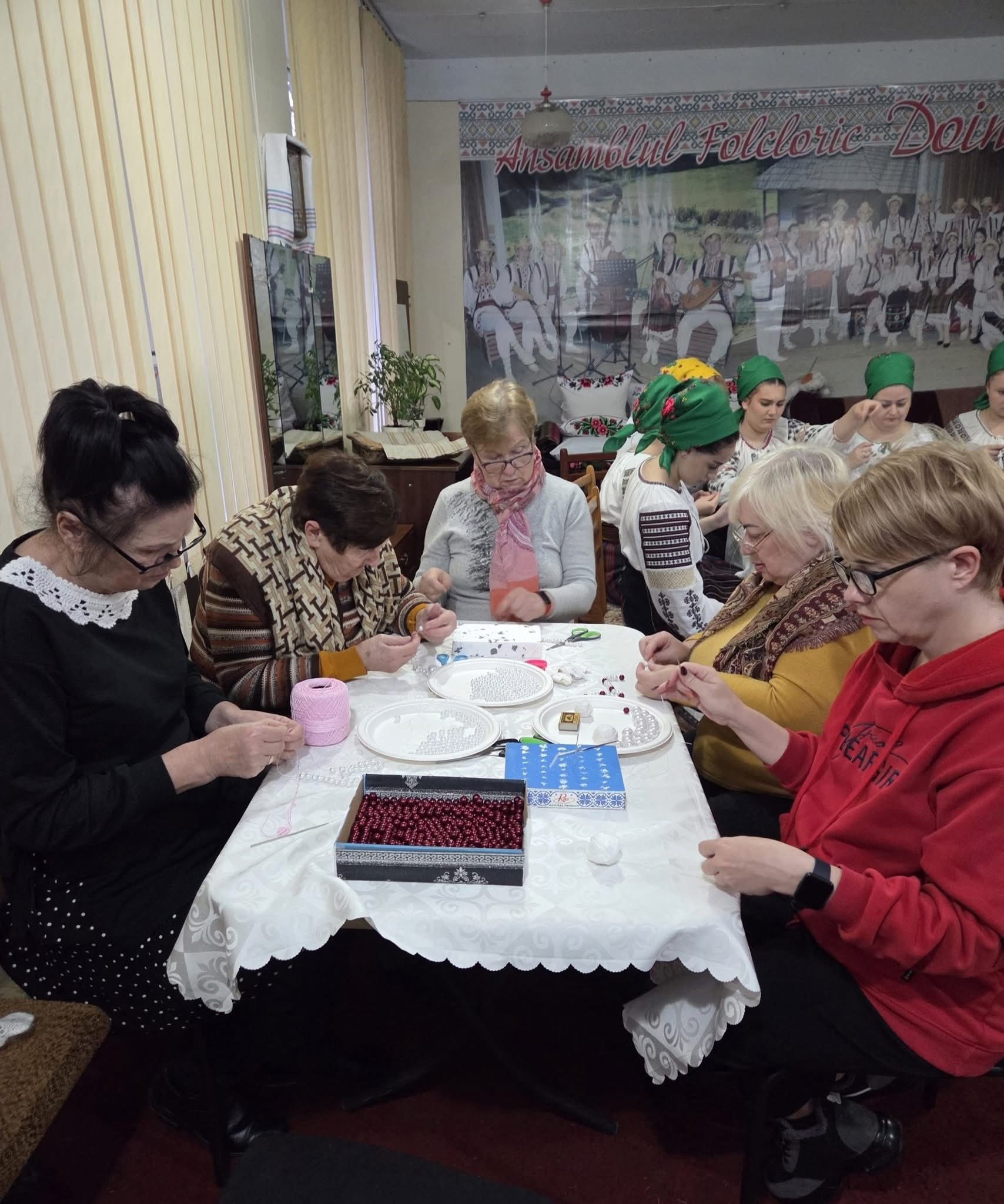 Atelierul a fost condus de meșterul popular Maria Ciobanu, care a împărtășit participanților secretele măiestriei sale. Cei prezenți au fost implicați în procesul de confecționare a mărgelelor, readucând la viață tradiții valoroase. Atmosfera a fost completată de cântecele populare interpretate de ansamblul folcloric „Doinița”, condus de Angelica Furtună-Taburceanu.
