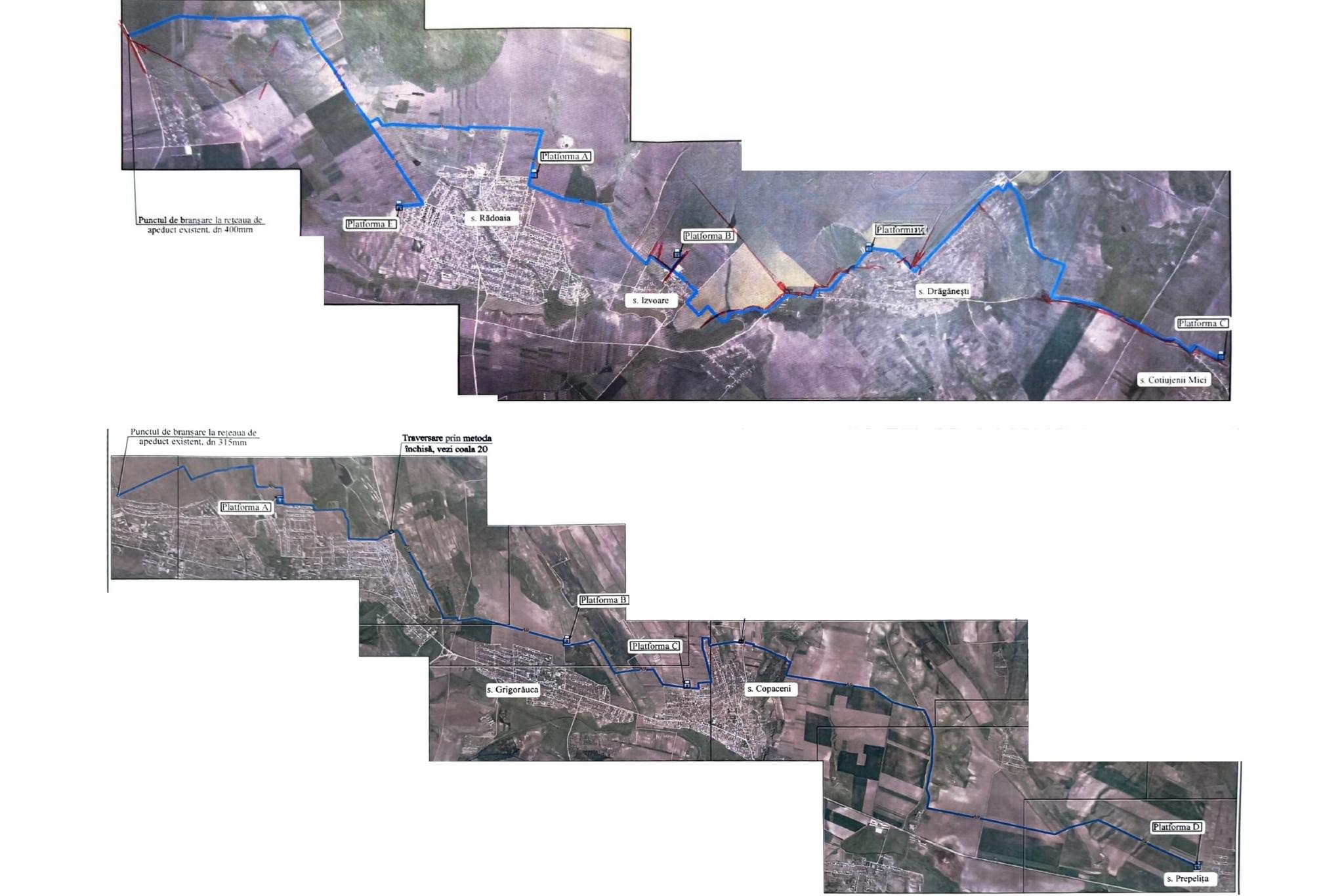 - direcția Rădoaia – Izvoare – Drăgănești – Cotiujenii Mici, unde sunt prevăzute construcția a peste 25 km de rețele exterioare de alimentare cu apă și lucrări de amenajare a teritoriului;